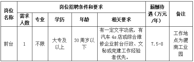 安徽稻香樓汽車維修有限責(zé)任公司為安徽省省直機(jī)關(guān)接待車隊(duì)所屬企業(yè),因工作需要,現(xiàn)面向社會(huì)公開招聘工作人員1名。現(xiàn)就有關(guān)事項(xiàng)公告如下:
