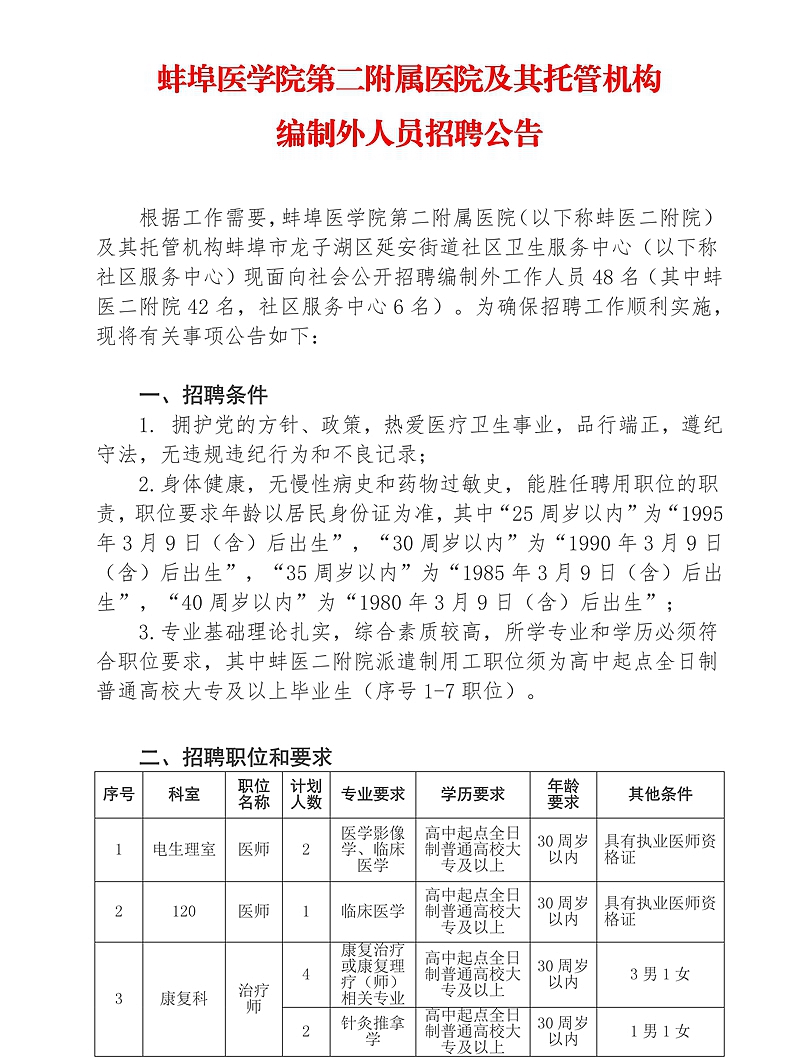 2020年蚌埠醫(yī)學院第二附屬醫(yī)院及其托管機構(gòu)編制外人員招聘公告