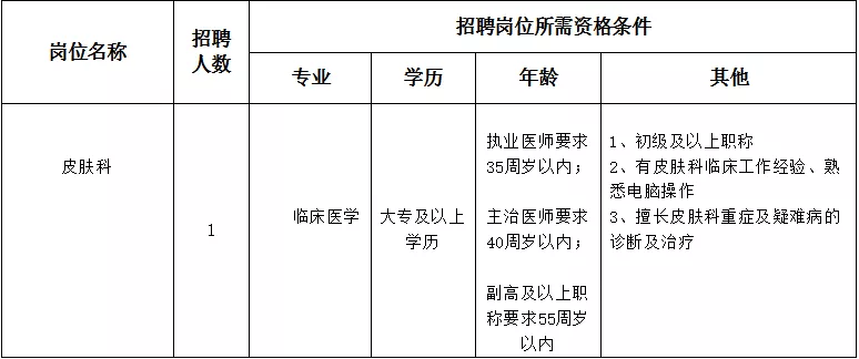 因?qū)W科建設(shè)和業(yè)務(wù)發(fā)展需要,經(jīng)研究,醫(yī)院面向社會(huì)公開招聘皮膚科衛(wèi)生專業(yè)技術(shù)人員。現(xiàn)將有關(guān)事項(xiàng)公告如下: