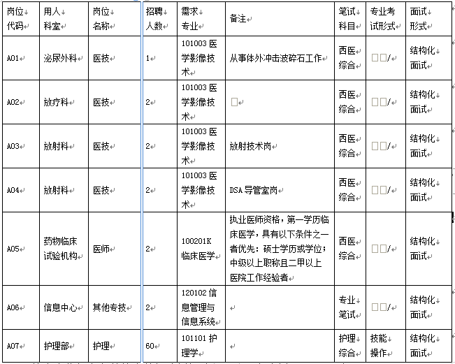 醫(yī)院紀(jì)委辦公室、人事部門對(duì)應(yīng)聘者進(jìn)行資格審核,合格后參加理論考試,理論考試成績按1:1.5的比例(計(jì)算結(jié)果如出現(xiàn)小數(shù),采取進(jìn)一法計(jì)算)進(jìn)入面試和技能操作考試。護(hù)理崗位理論考試成績占50%,面試成績占30%,技能操作考試成績占20%;其他崗位理論考試成績占60%,面試成績占40%。面試成績不及格者(低于60分)直接淘汰。根據(jù)綜合成績確定體檢人員名單(按招聘崗位1:1比例體檢),體檢參照《公務(wù)員錄用體檢通用標(biāo)準(zhǔn)(試行)》標(biāo)準(zhǔn),其中護(hù)理崗位要求增加皮試檢查,體檢合格,經(jīng)院長辦公會(huì)議研究同意,公示無異議者,辦理錄用手續(xù)。