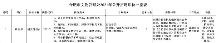 因工作需要,合肥市文物管理處面向社會(huì)公開招聘2名工作人員。具體如下: