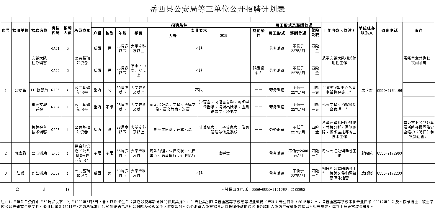 招聘單位部門電話見(jiàn)《岳西縣公安局等三單位公開(kāi)招聘計(jì)劃表》。