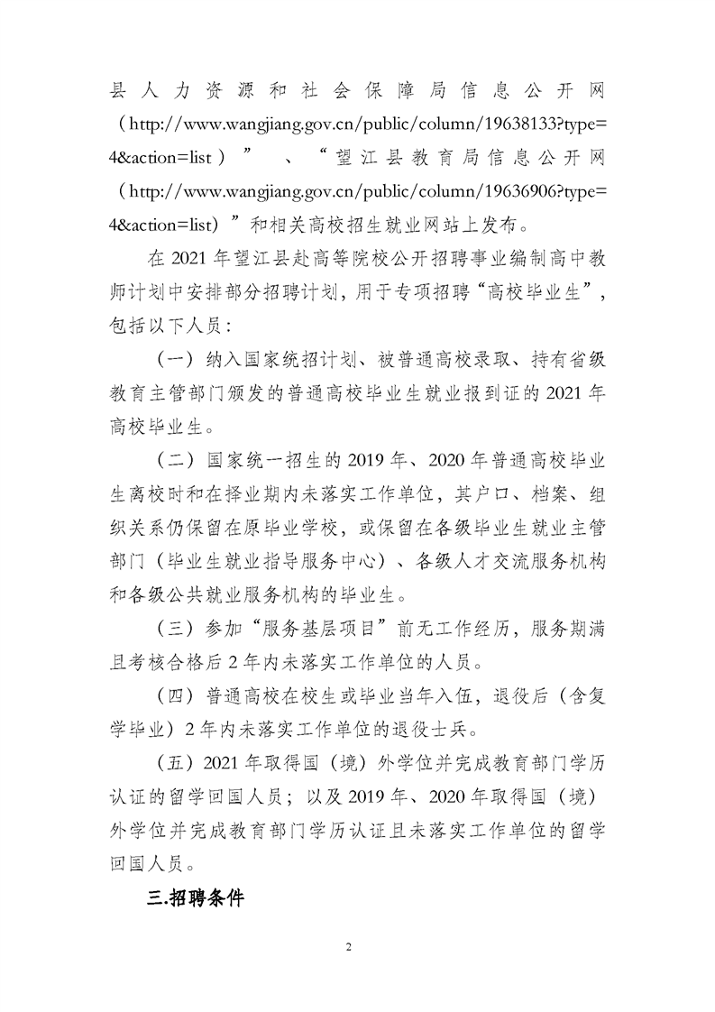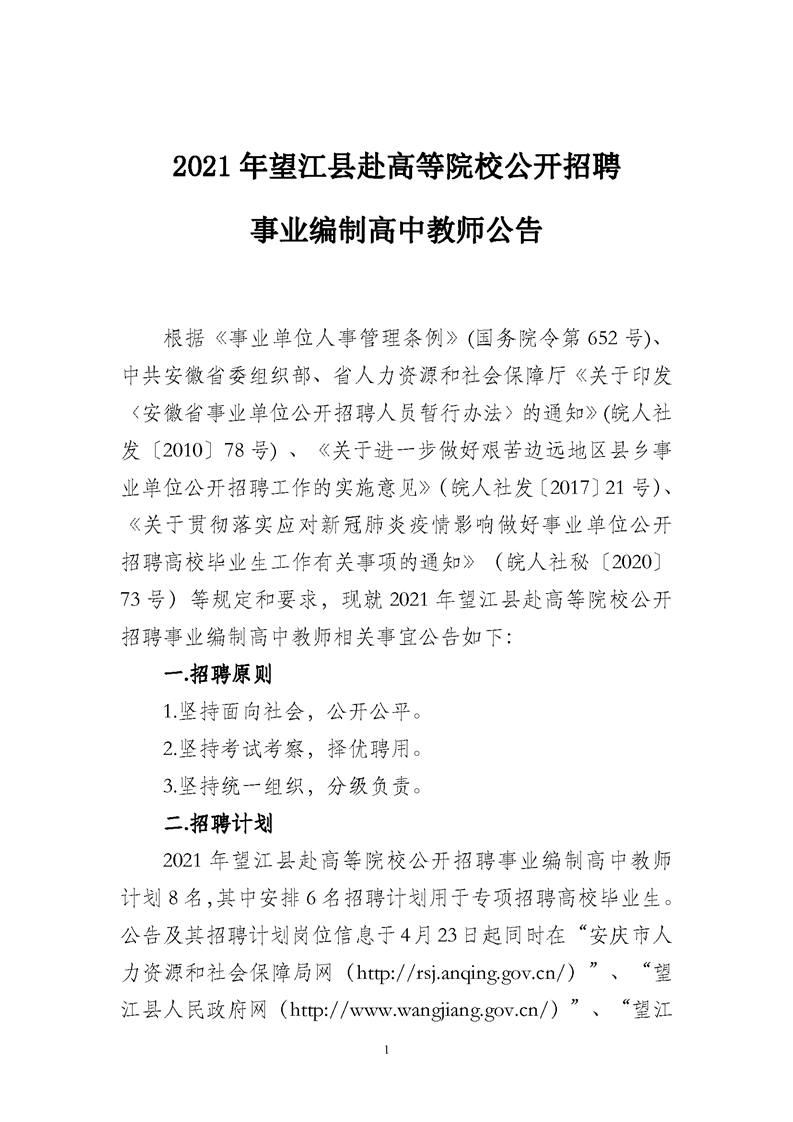 2021年安慶望江縣赴高等院校公開招聘事業(yè)編制高中教師公告