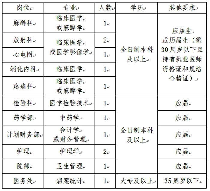 根據(jù)醫(yī)院業(yè)務(wù)發(fā)展的需要,現(xiàn)面向社會(huì)公開招聘13人,具體公告如下: