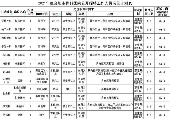 附件1:《2021年度合肥市骨科醫(yī)院公開招聘工作人員崗位計(jì)劃表》