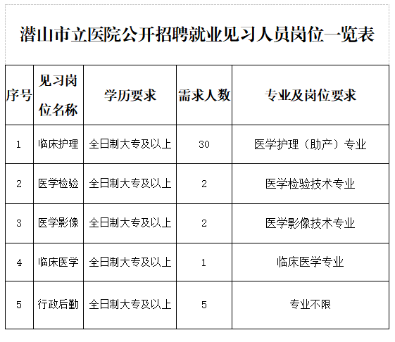 附件1:潛山市立醫(yī)院公開(kāi)招聘就業(yè)見(jiàn)習(xí)人員崗位一覽表