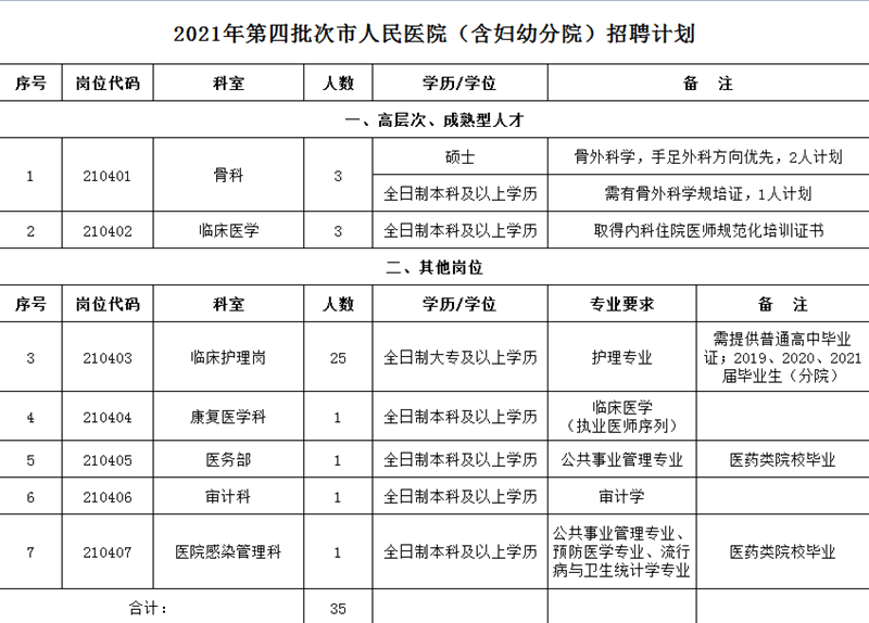 2021-07-22 10:17:19閱讀()宣城市人民醫(yī)院為滿足市人民醫(yī)院及市婦幼保健院發(fā)展需要,加強(qiáng)人才隊(duì)伍建設(shè),按照公開、平等、競爭、擇優(yōu)的原則,面向社會(huì)公開招聘工作人員,現(xiàn)將有關(guān)事項(xiàng)通知如下。
