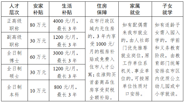 根據《中共淮北市委辦公室 淮北市人民政府辦公室關于印發(fā)〈淮北市事業(yè)單位引進急需緊缺人才暫行辦法〉的通知》(辦〔2021〕27號)等文件規(guī)定,對新引進與用人單位簽訂5年以上合同全職在淮工作的急需緊缺人才,除正常享受所在事業(yè)單位工作人員工資和各項福利外,還享受安家補貼、生活補貼、住房保障、家屬就業(yè)、子女就學等方面的優(yōu)惠待遇。
