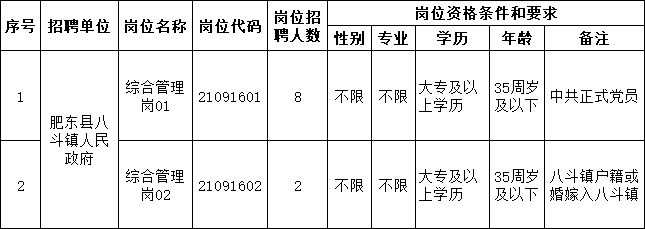 (七)具備省公務(wù)員主管部門和《肥東縣農(nóng)村村級工作人員管理辦法(試行)》規(guī)定的擬任職位所要求的其他資格條件;