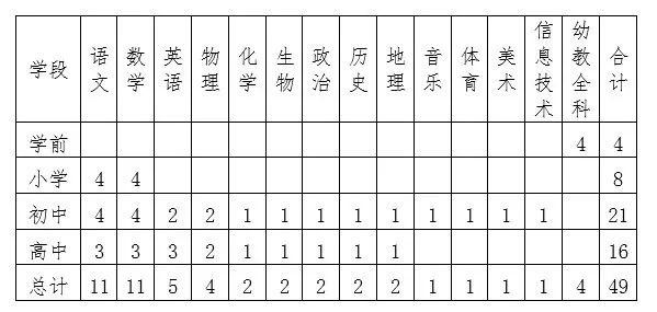 注:應聘音樂(鋼琴專項)、體育、美術、信息技術學科崗位的,專項技能應十分突出,報名時在相關欄目作說明。