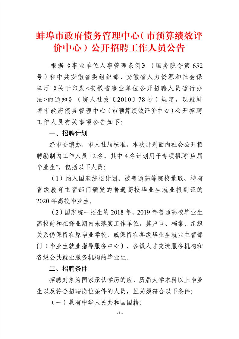 原標(biāo)題:2020年蚌埠市政府債務(wù)管理中心(市預(yù)算績(jī)效評(píng)價(jià)中心)公開(kāi)招聘工作人員公告
