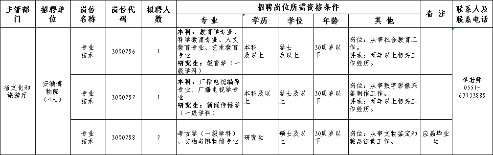 有關本次招聘崗位的具體問題,請向安徽博物院直接咨詢。