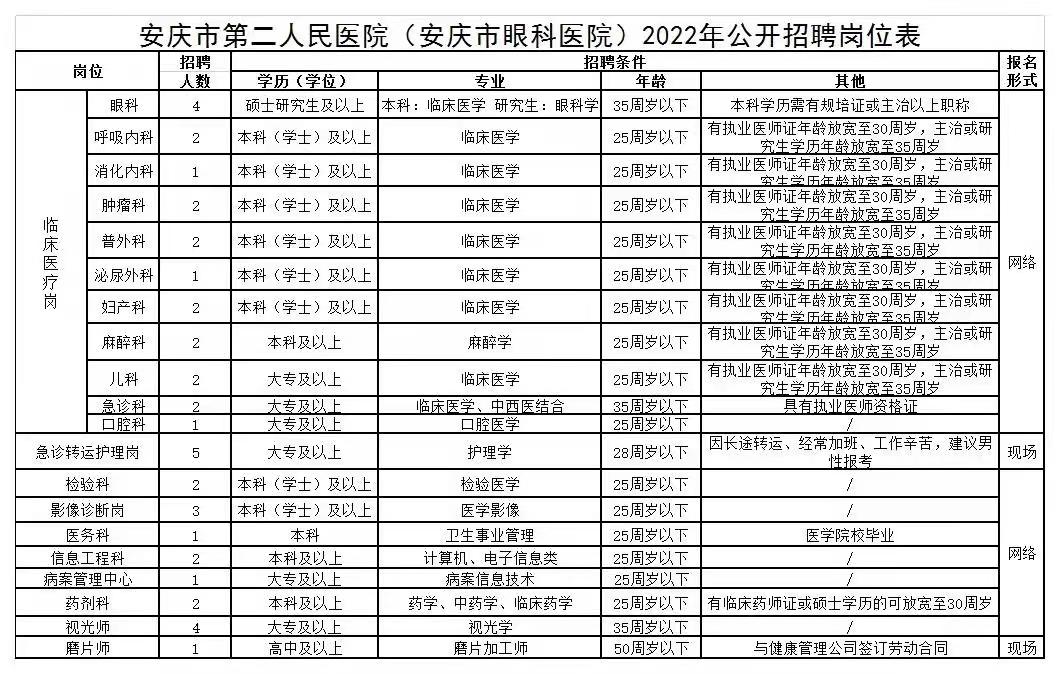 2022年安慶市第二人民醫(yī)院(安慶市眼科醫(yī)院)公開招聘工作方案