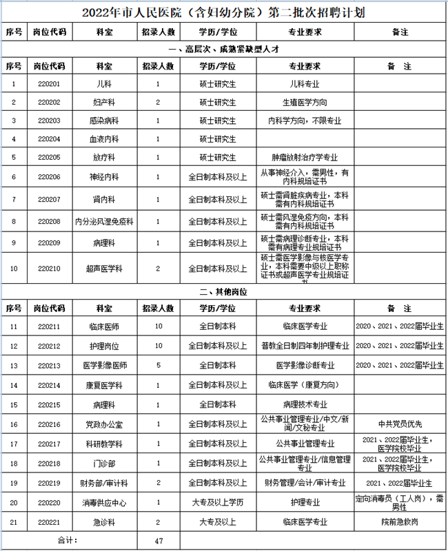 2022-05-26 20:22:23閱讀()宣城市人民醫(yī)院為滿足市人民醫(yī)院及市婦幼保健院發(fā)展需要,加強(qiáng)人才隊(duì)伍建設(shè),按照公開(kāi)、平等、競(jìng)爭(zhēng)、擇優(yōu)的原則,面向社會(huì)公開(kāi)招聘工作人員,現(xiàn)將有關(guān)事項(xiàng)通知如下: