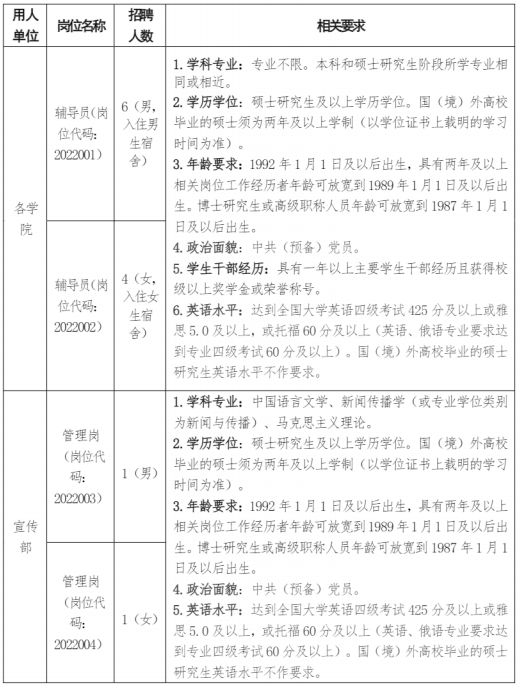 (一)輔導(dǎo)員崗位計(jì)劃招聘10人。編外合同制聘用。