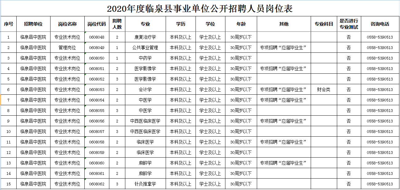 2020年度臨泉縣事業(yè)單位面向社會(huì)公開(kāi)招聘人員工作已經(jīng)開(kāi)始,臨泉縣中醫(yī)院計(jì)劃帶編招錄32人。