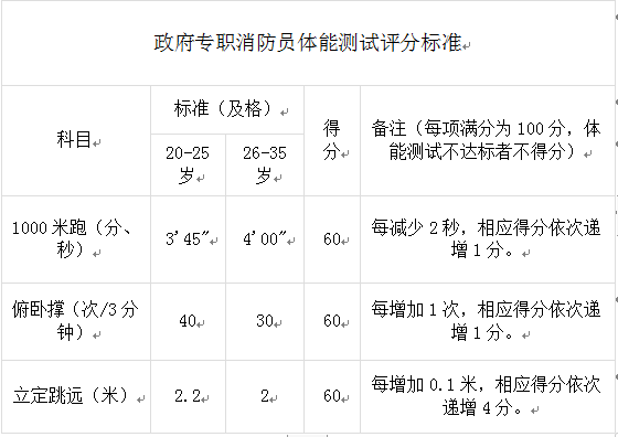 (3)測(cè)試項(xiàng)目:政府專(zhuān)職消防隊(duì)員1000米跑、俯臥撐、立定跳遠(yuǎn)。