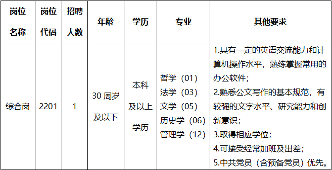 1.招聘對(duì)象除滿足崗位條件外,還須符合以下條件: