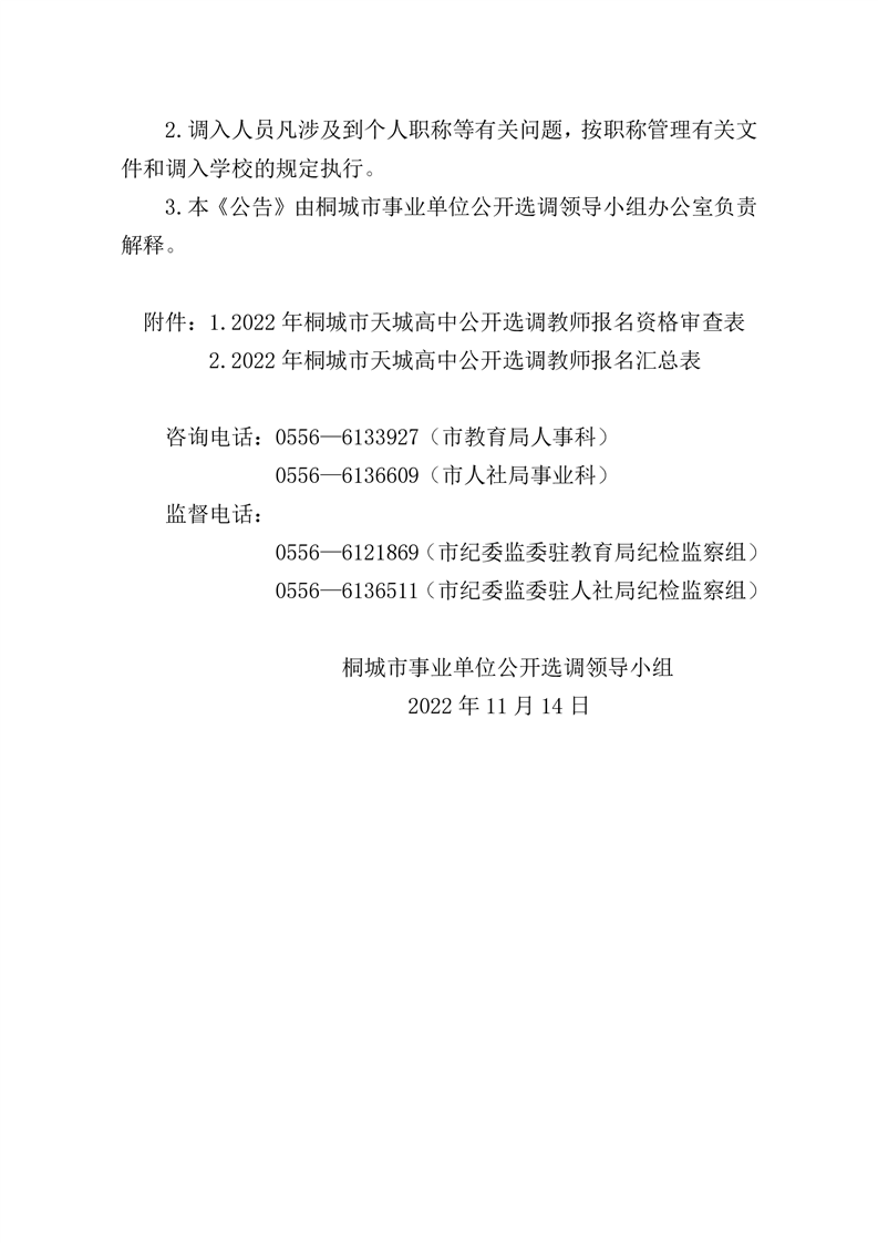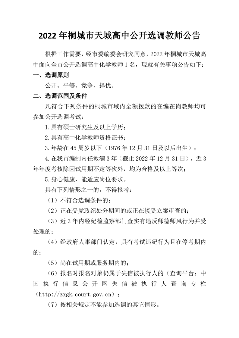 2022年安慶桐城市天城高中公開選調(diào)教師公告