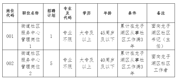 招聘對象為龍子湖區(qū)在職城區(qū)社區(qū)工作者,主要包括社區(qū)“兩委”專職成員及由省、市、區(qū)統(tǒng)一招錄的社區(qū)專職工作人員(含大學(xué)生特崗、網(wǎng)格員、各類協(xié)管員),在必須符合《蚌埠市面向社區(qū)工作者公開招聘事業(yè)單位工作人員實(shí)施方案》規(guī)定條件基礎(chǔ)上,還需具有以下條件:
