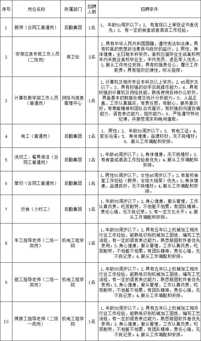 3.技能測(cè)試崗位:電工、車工指導(dǎo)老師、鉗工指導(dǎo)老師、焊接工指導(dǎo)老師。