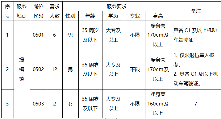 計(jì)劃招聘城市管理輔助項(xiàng)目服務(wù)人員20名,具體要求如下表:
