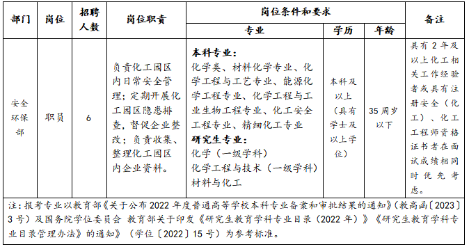 2023-05-17 15:40:13閱讀()寧國市人民政府為滿足公司發(fā)展需要,寧國經(jīng)濟(jì)技術(shù)開發(fā)區(qū)管委會所屬公司安徽興港化工有限公司擬面向社會公開招聘6名工作人員,現(xiàn)將有關(guān)事項公告如下:
