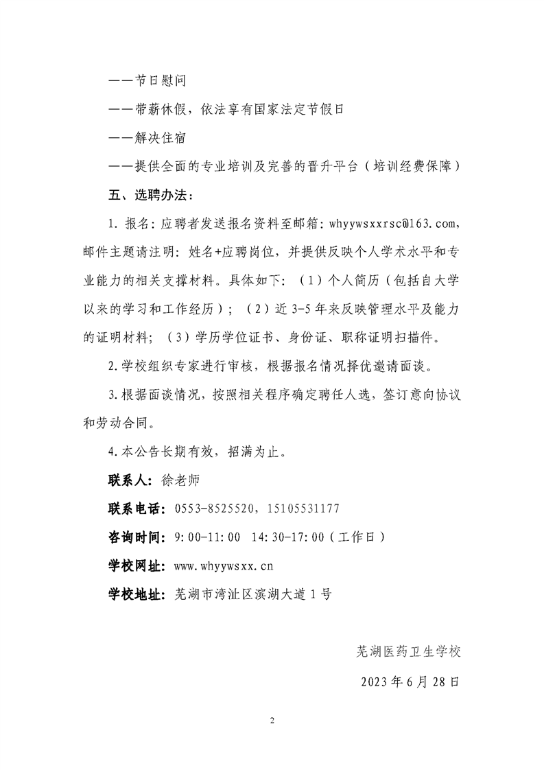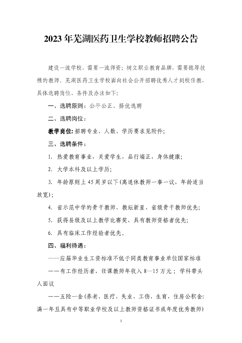 2023年蕪湖醫(yī)藥衛(wèi)生學(xué)校教師招聘公告