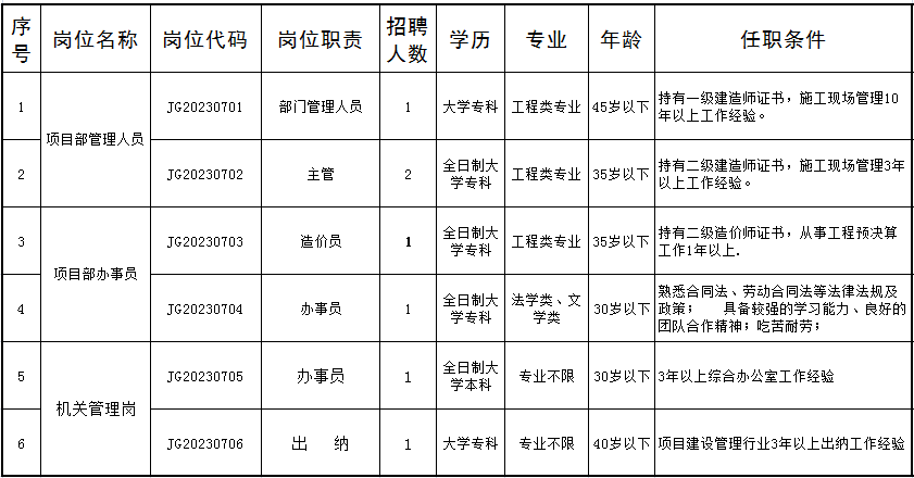 公開(kāi)招聘人員崗位表中涉及“年齡條件”的如“45歲以下”為“1978年7月31日(含)以后出生”(其他涉及年齡計(jì)算的依此類(lèi)推);工作經(jīng)歷要求,截止時(shí)間為2023年7月31日。