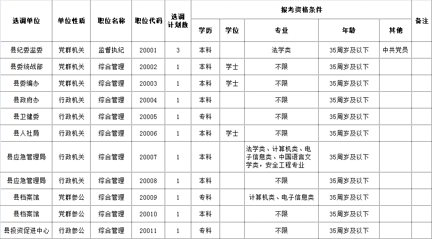 2020年馬鞍山含山縣縣直機(jī)關(guān)公開選調(diào)公務(wù)員職位表