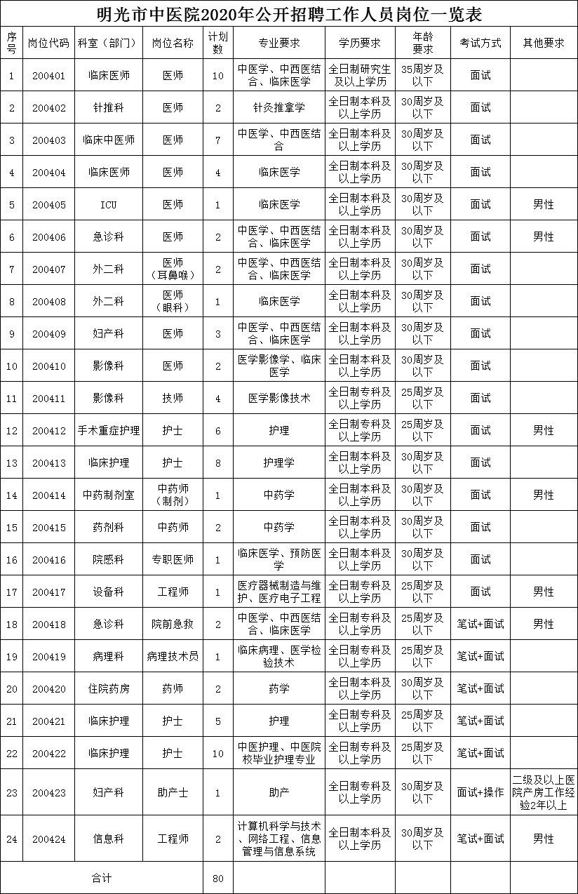 2020年滁州明光市中醫(yī)院招聘工作人員崗位一覽表