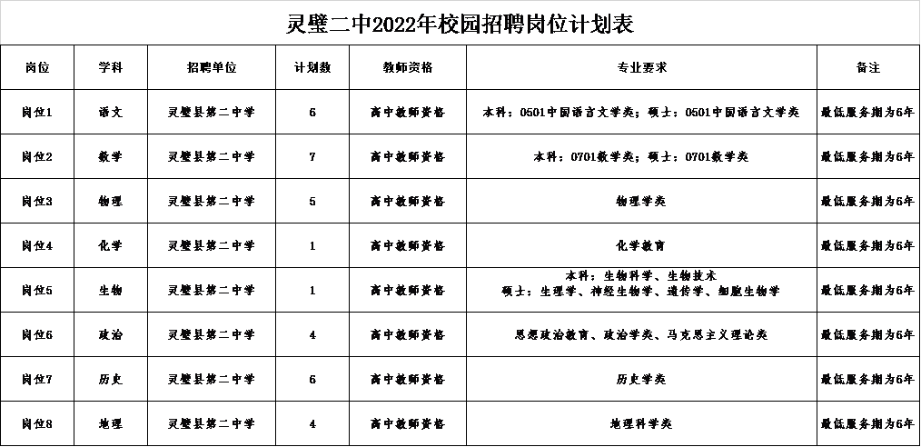 2022年宿州靈璧縣第二中學(xué)校園招聘崗位計劃表